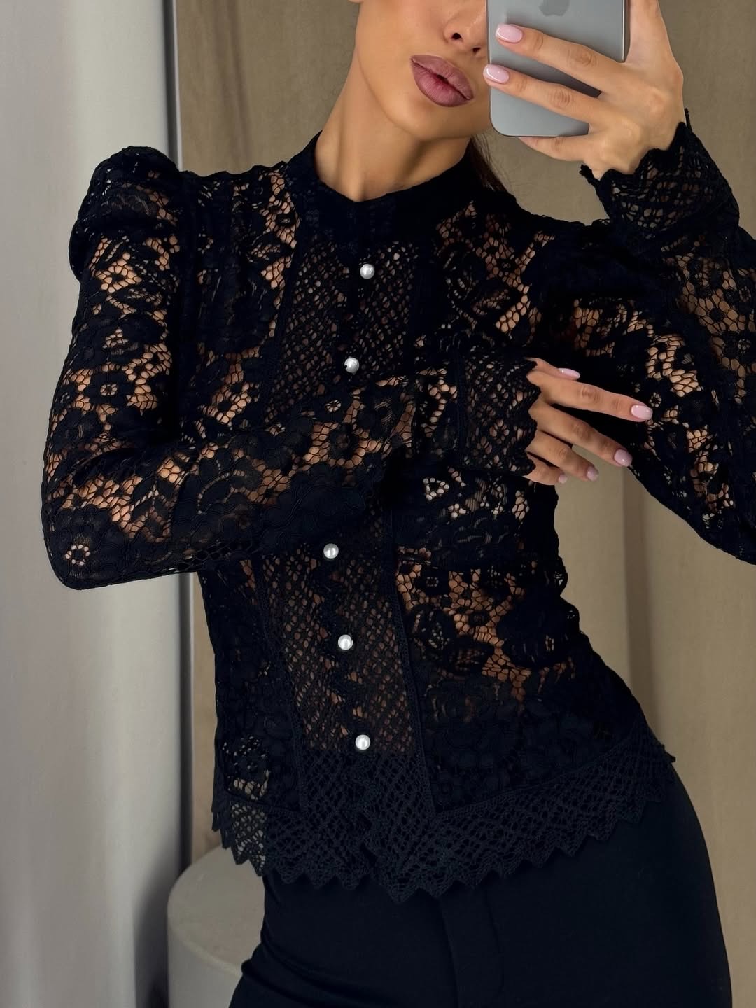 Погрузитесь в атмосферу французского шика с нашей изысканной блузой из двух видов кружева.