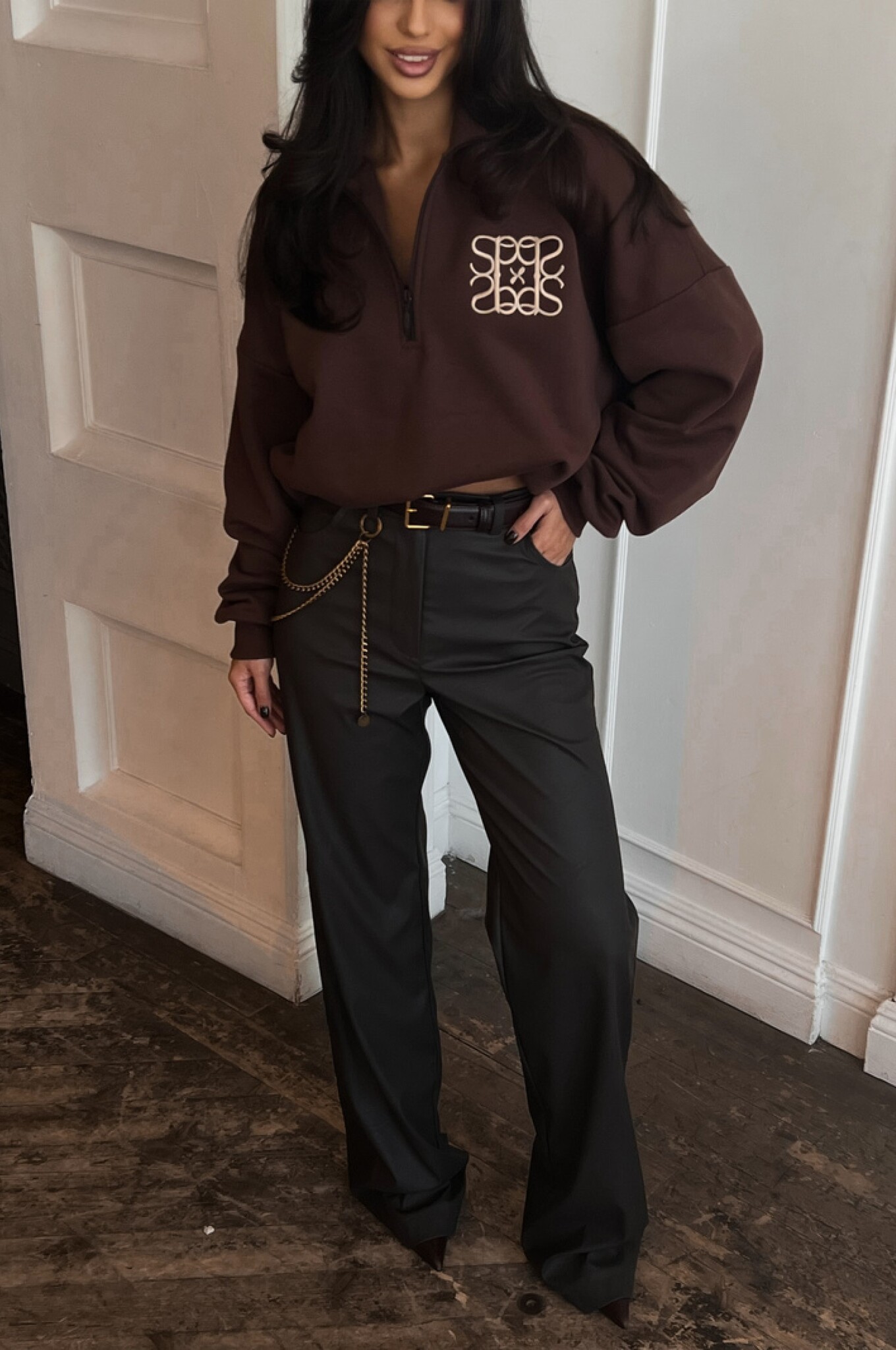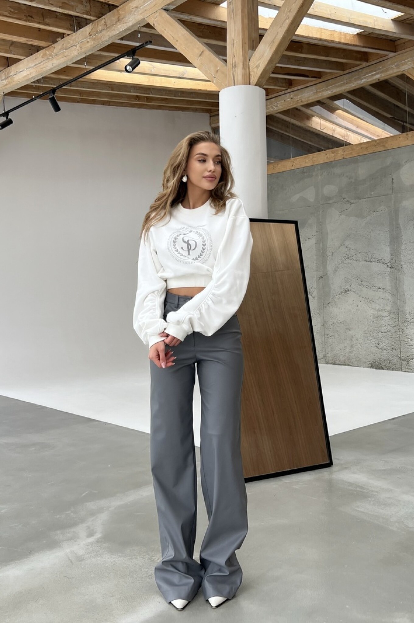 Экокожа премиального качества на трикотажной основе, в которых не будет жарко находится в помещении, модель с застежкой на молнию и пуговицу.