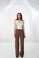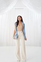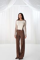 Брюки красиво вытягивают силуэт и подчеркивают форму, сохраняя комфорт в течение всего дня. Фактура под замшу добавляет глубину и делает образ по-настоящему дорогим.