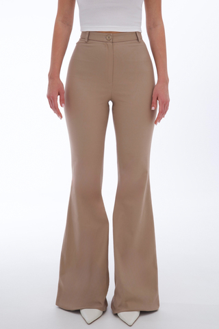 Брюки выполнены из премиальной эко-кожи под замшу в двух универсальных оттенках.