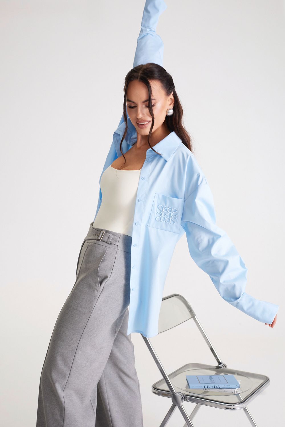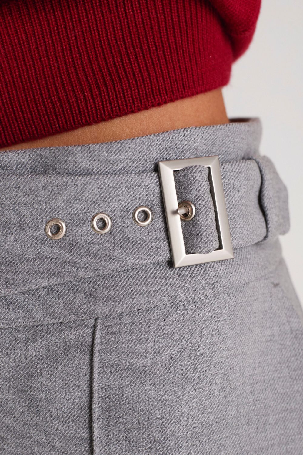 Акцентный пояс и четко выделенные стрелки выигрышно подчеркивают стройность ног и талию, создавая элегантный силуэт.