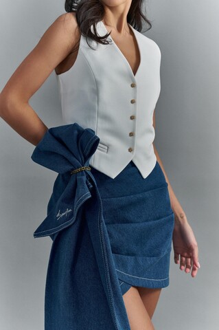 На поясе спереди расположена деликатная вышивка SPECIFICA. В пошиве используется плотная итальянская костюмная ткань.
