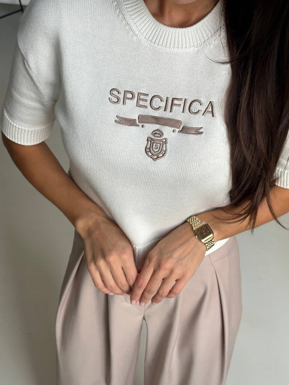 Крупный логотип бренда SPECIFICA на груди добавляет нотку премиальности и узнаваемости.