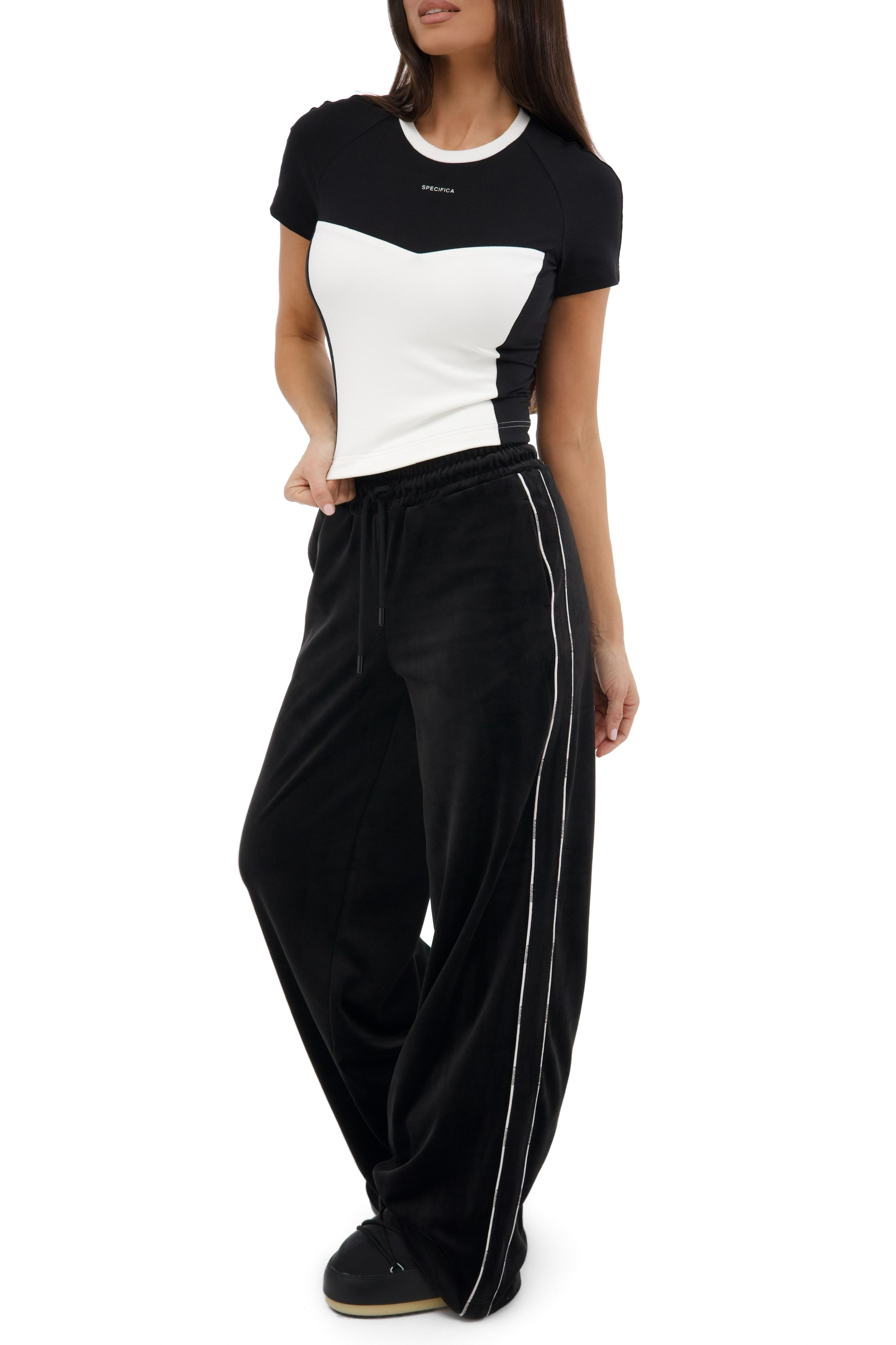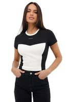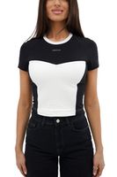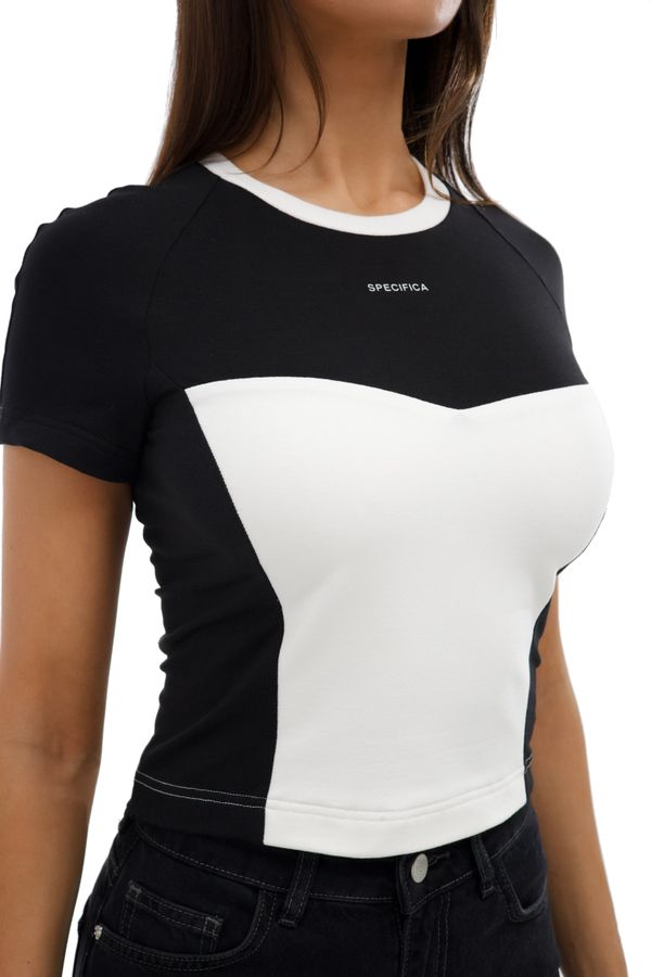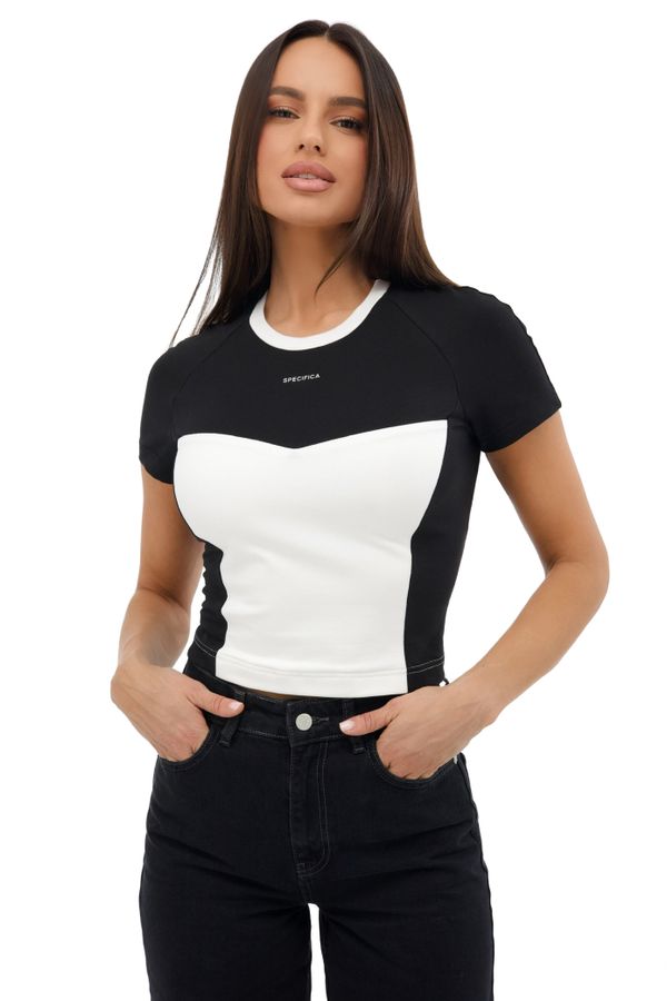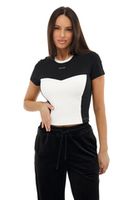 За счет уникального кроя и двух контрастных оттенков, футболка подчеркивает все достоинства, выделяя талию и придавая формам женственный силуэт.