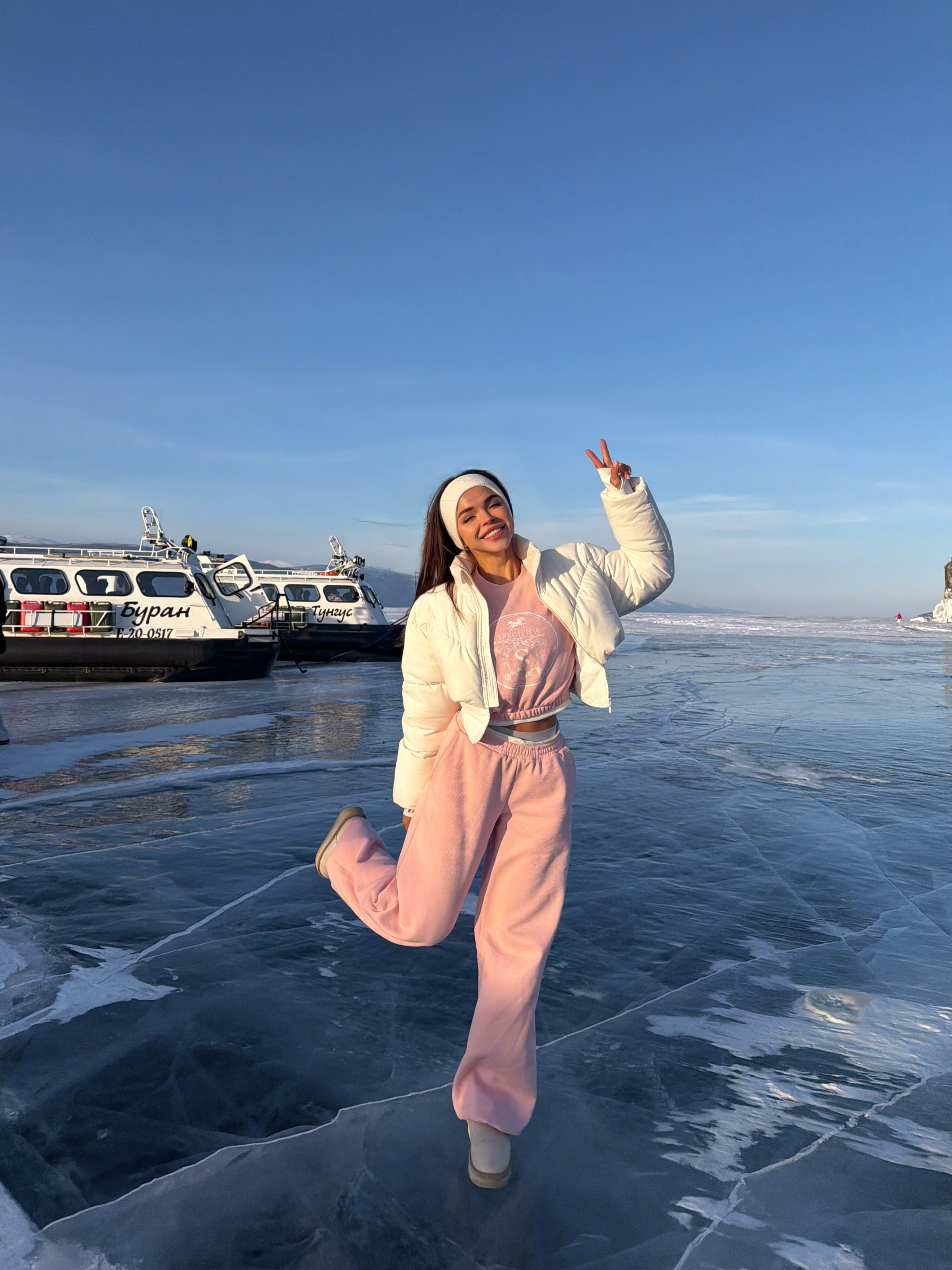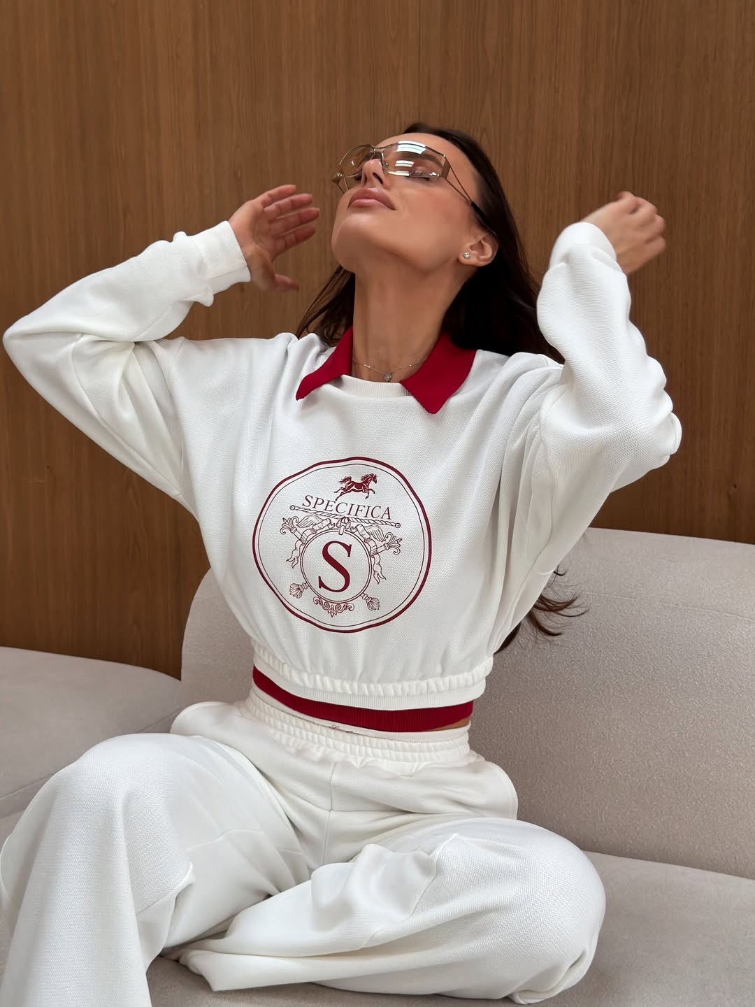 Укороченный свитшот, украшенный яркой печатью с фирменным логотипом и символом нового года, который добавляет индивидуальности и праздничного настроения.