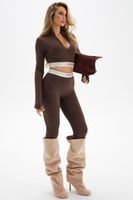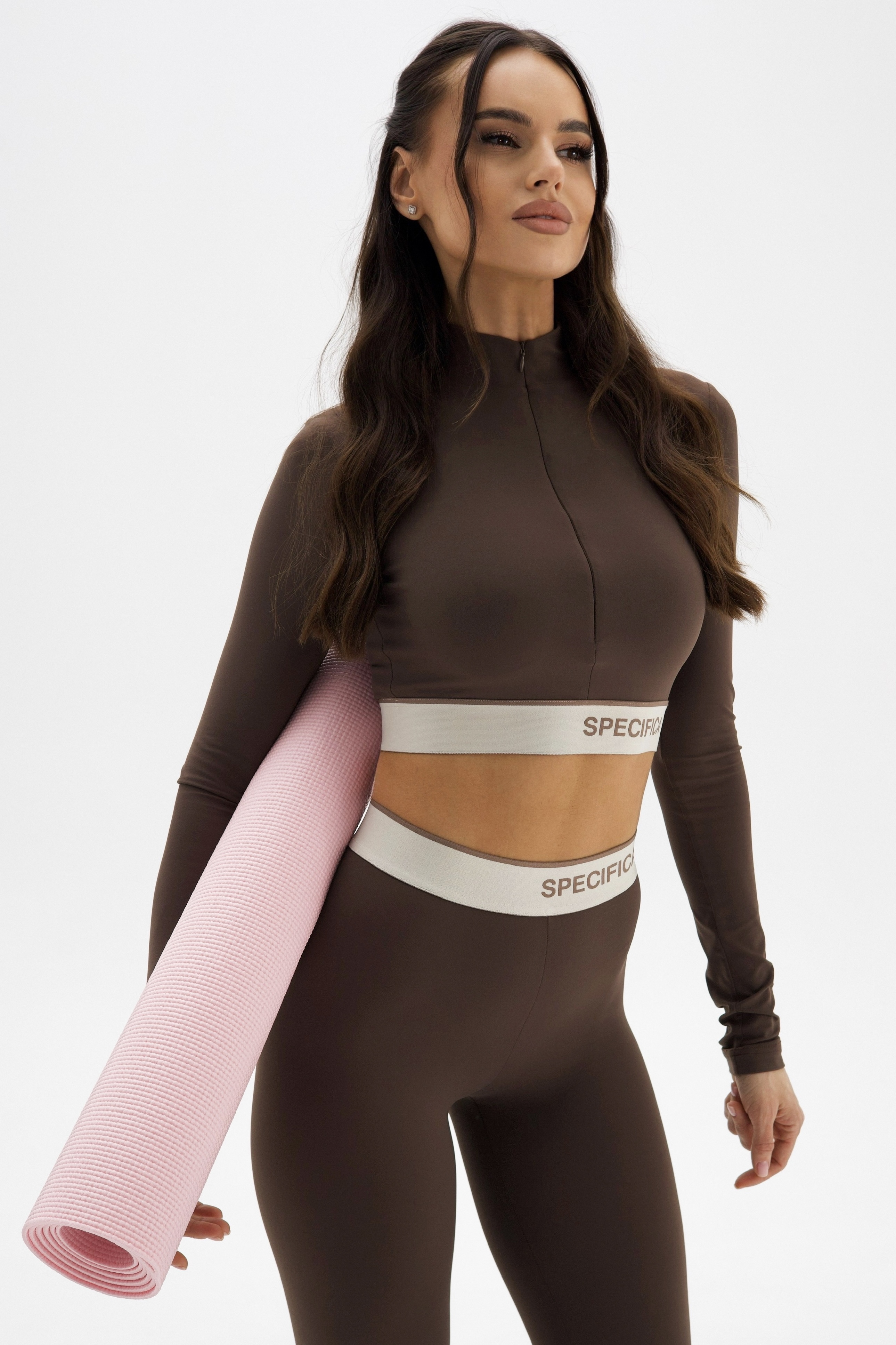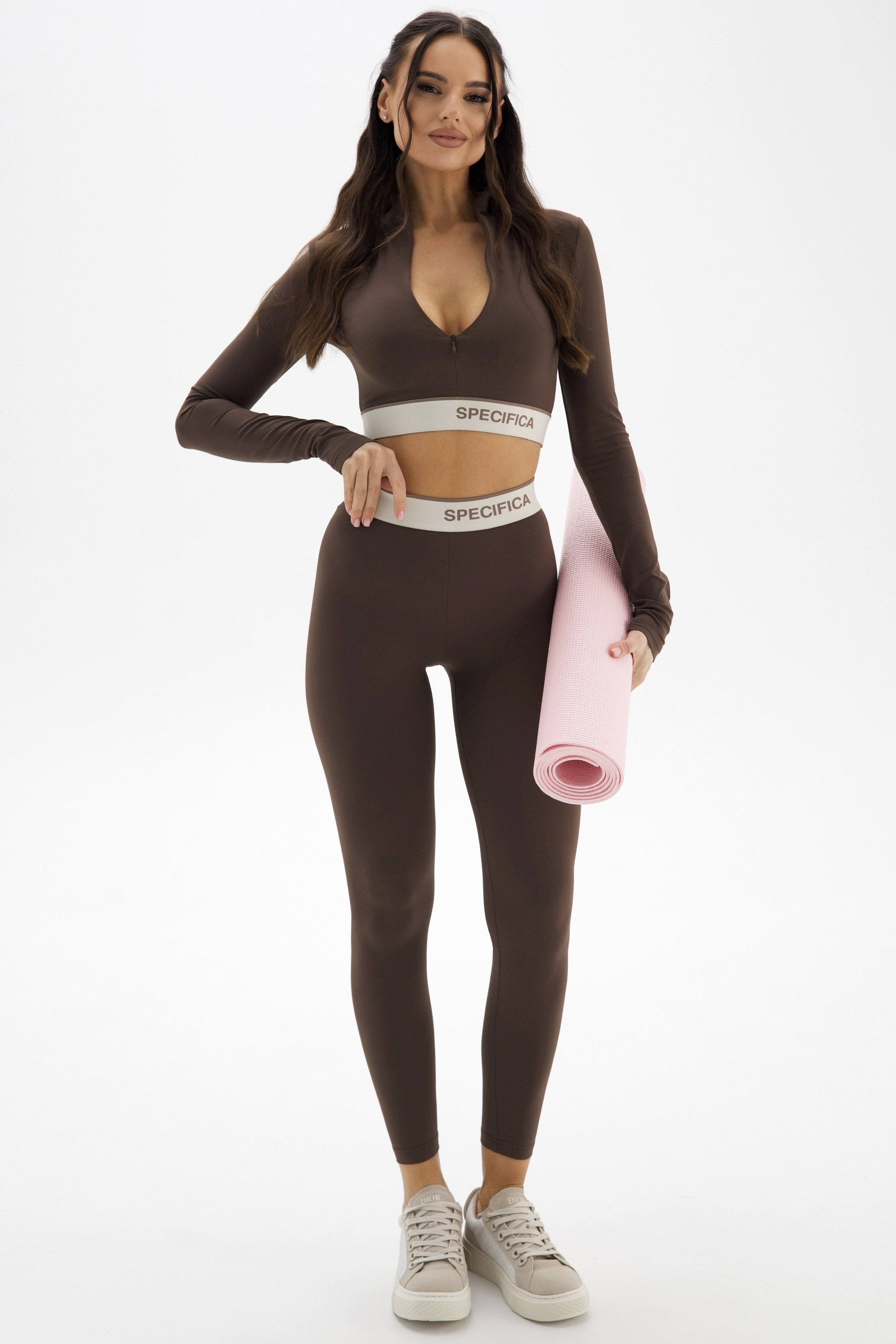 Костюм состоит из топа на потайной молнии с длинным рукавом и леггинсов с идеальной посадкой.