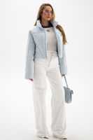 Кожаные брендированные треугольники, укороченный крой с асимметричным низом, ремувки на молнии, декоративная отстрочка и кулиска для идеальной посадки подчеркивают продуманность дизайна.