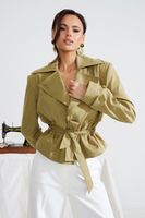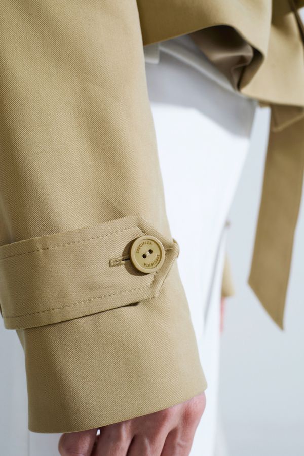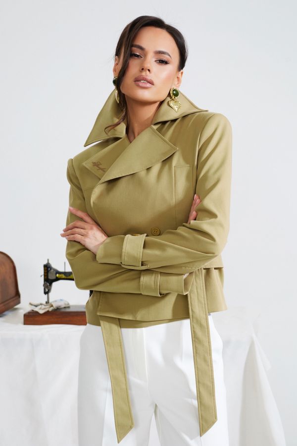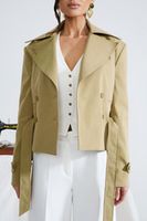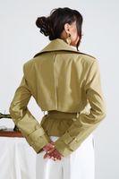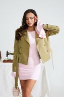 Укороченный силуэт подчеркивает пропорции, а пояс акцентирует талию, создавая собранный и выразительный образ.