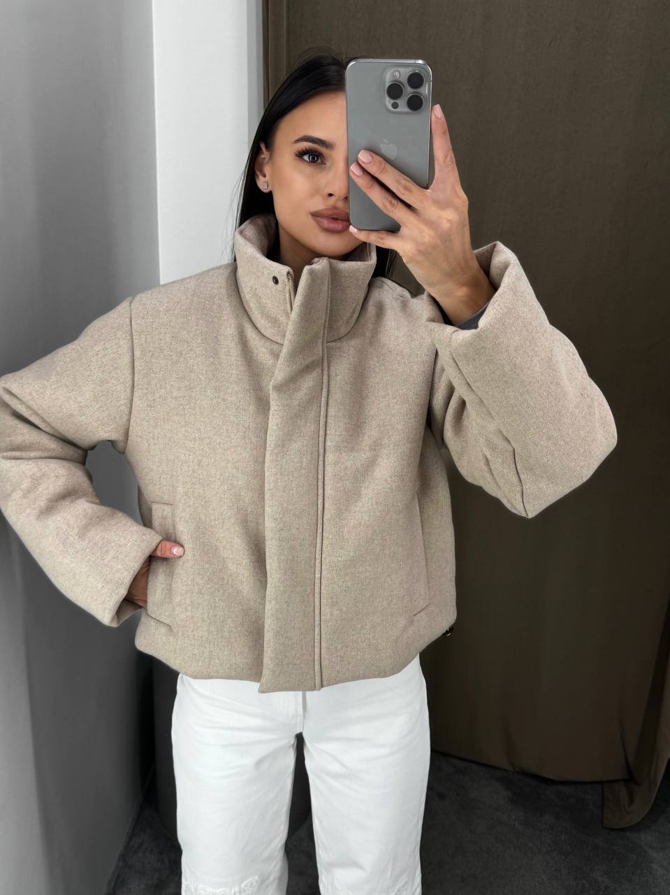 Укороченная куртка "TEPLO" в бежевом цвете - идеальный выбор предстоящей весны, сочетающая в себе стиль и функциональность.