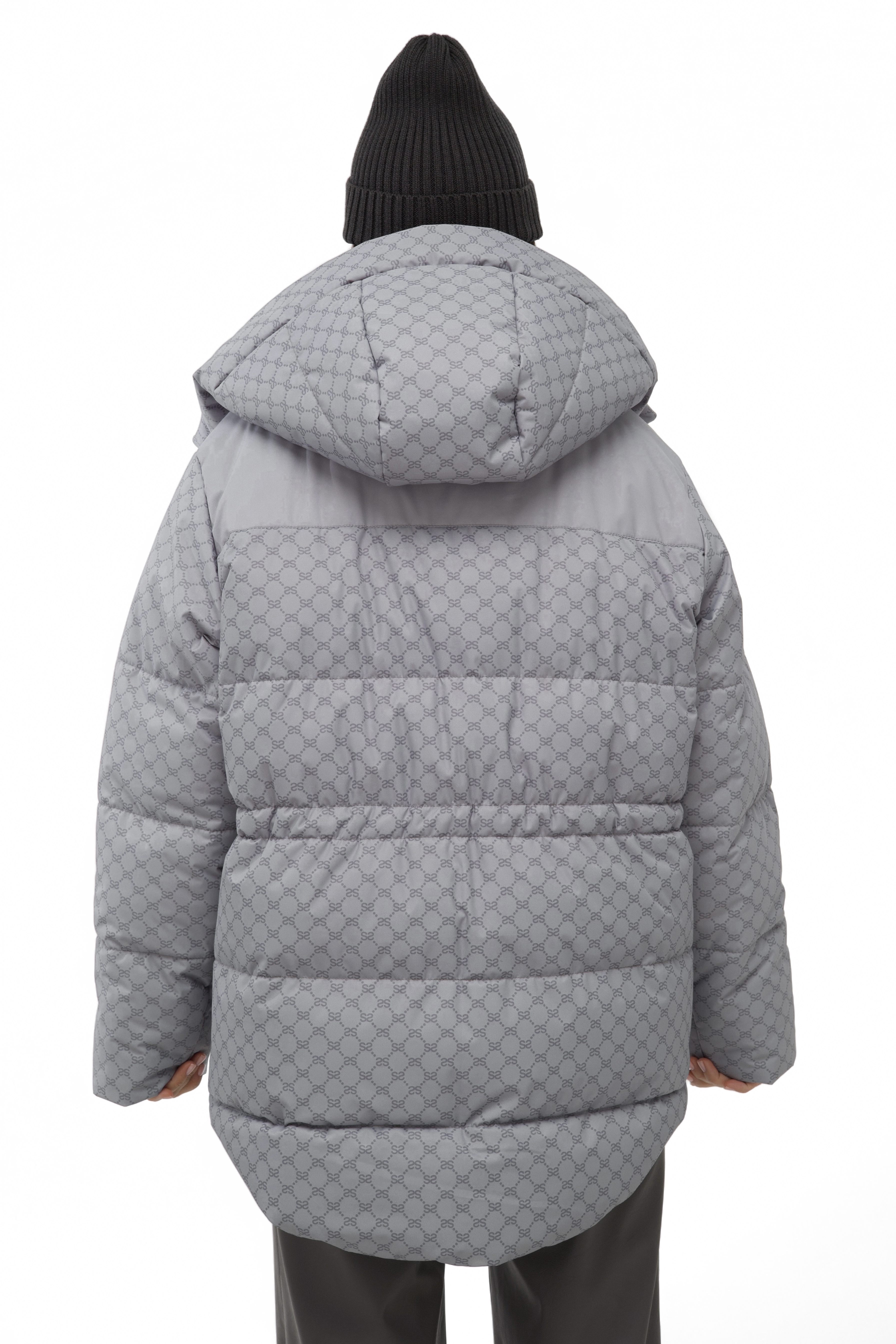 Оверсайз пуховик с отстегивающимся капюшоном.