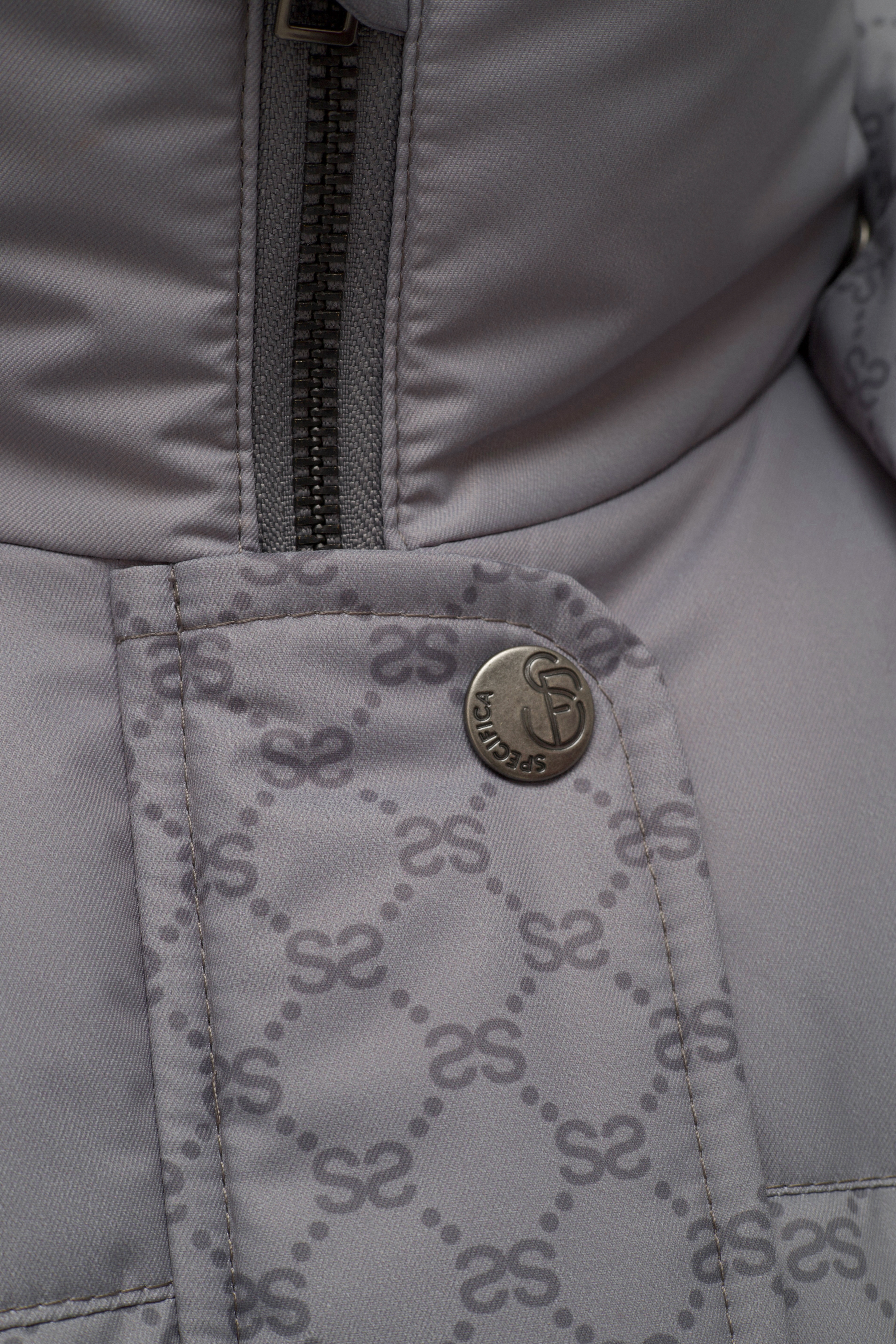 Изделие комфортного свободного кроя, выполненное из эксклюзивной водоотталкивающей и непродуваемой мембраны с символикой бренда.