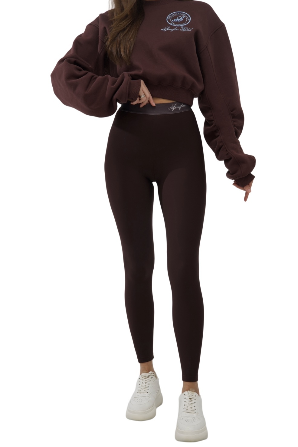 Базовый шоколадный оттенок в сочетании с брендированной резинкой в цвет-идеальный тандем.