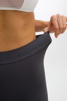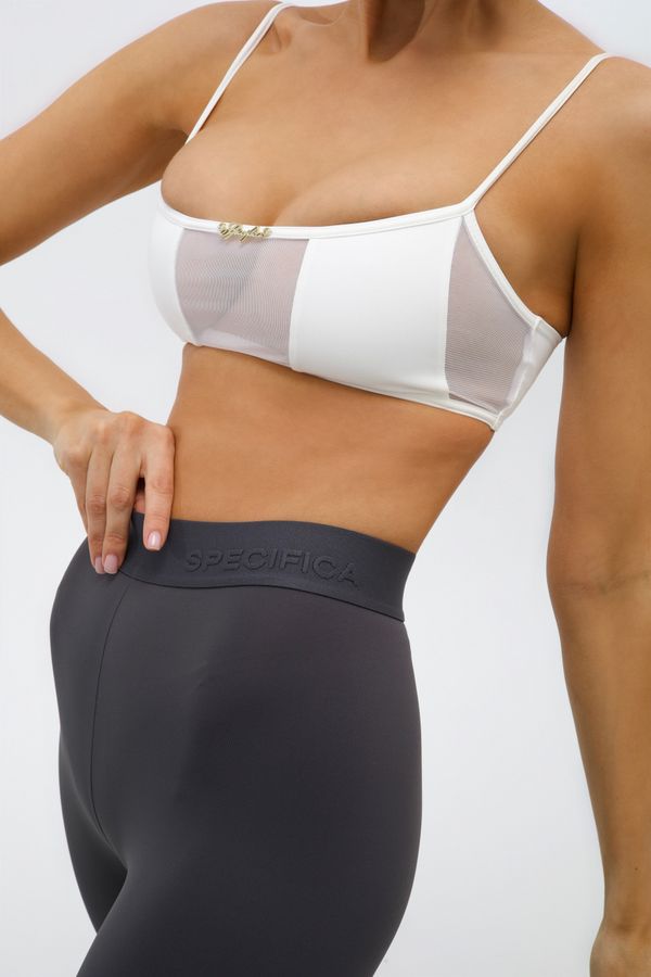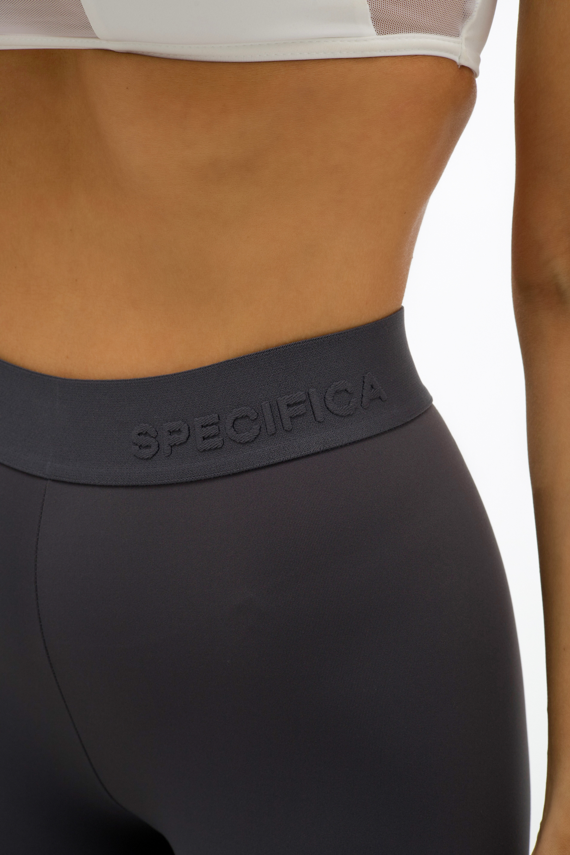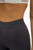Леггинсы серого цвета из эластичной ткани с высокой посадкой выполнены по современной технологии, без боковых швов.