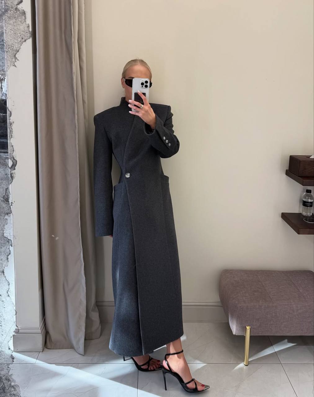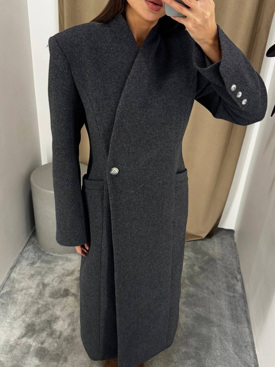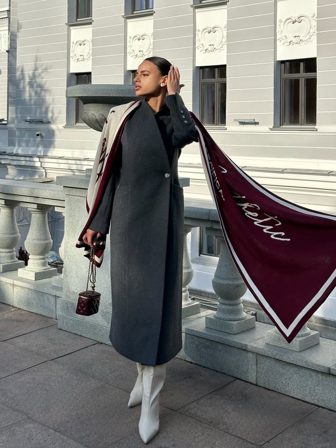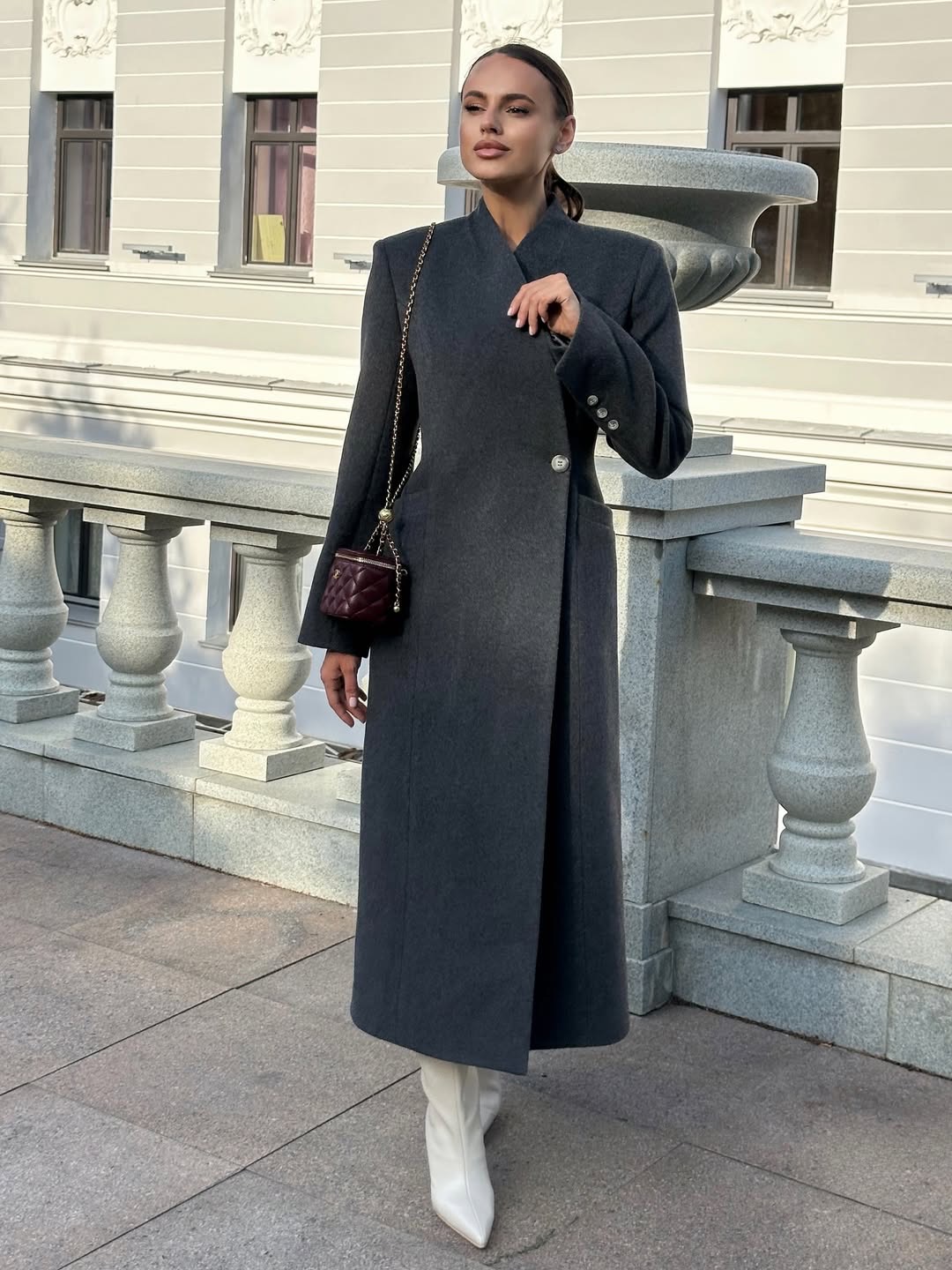 Элегантное пальто макси «Я ПРИОРИТЕТ» с прорезными карманами — идеальный выбор для холодных дней.