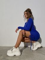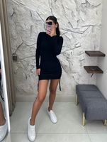 Особенностью платья являются завязки в боковых швах, с помощью которых можно регулировать длину платья.