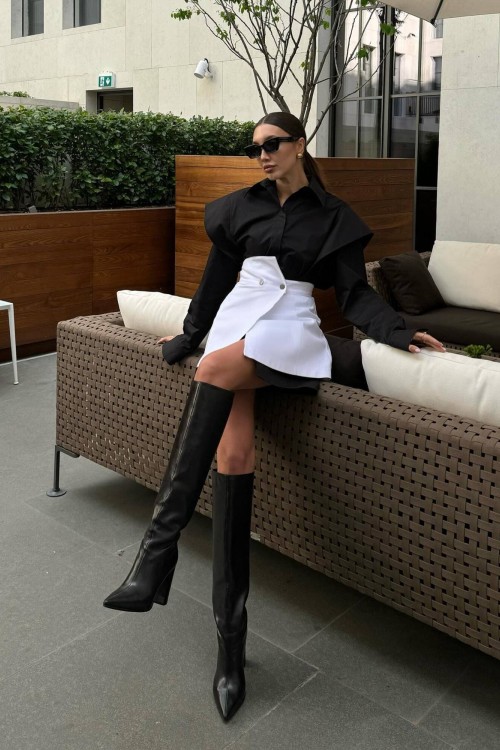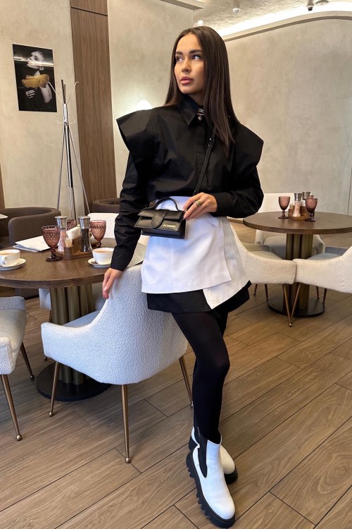 Спереди расположены пуговицы, которые позволяют регулировать глубину выреза и по своему усмотрению менять общий стиль наряда.