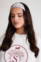 Повязка выполнена из вязаного трикотажа и сбоку изделия ее украшает наш логотип