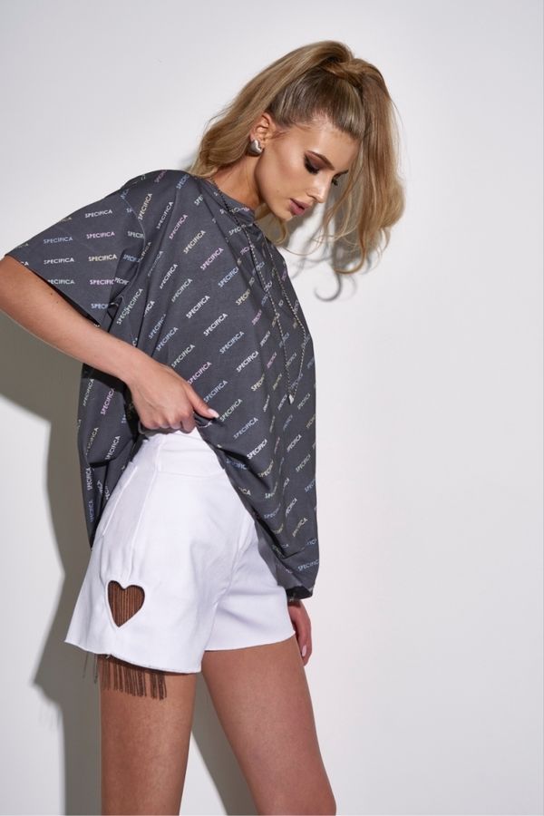 Шорты из джинсы с декоративным элементом в виде сердца.