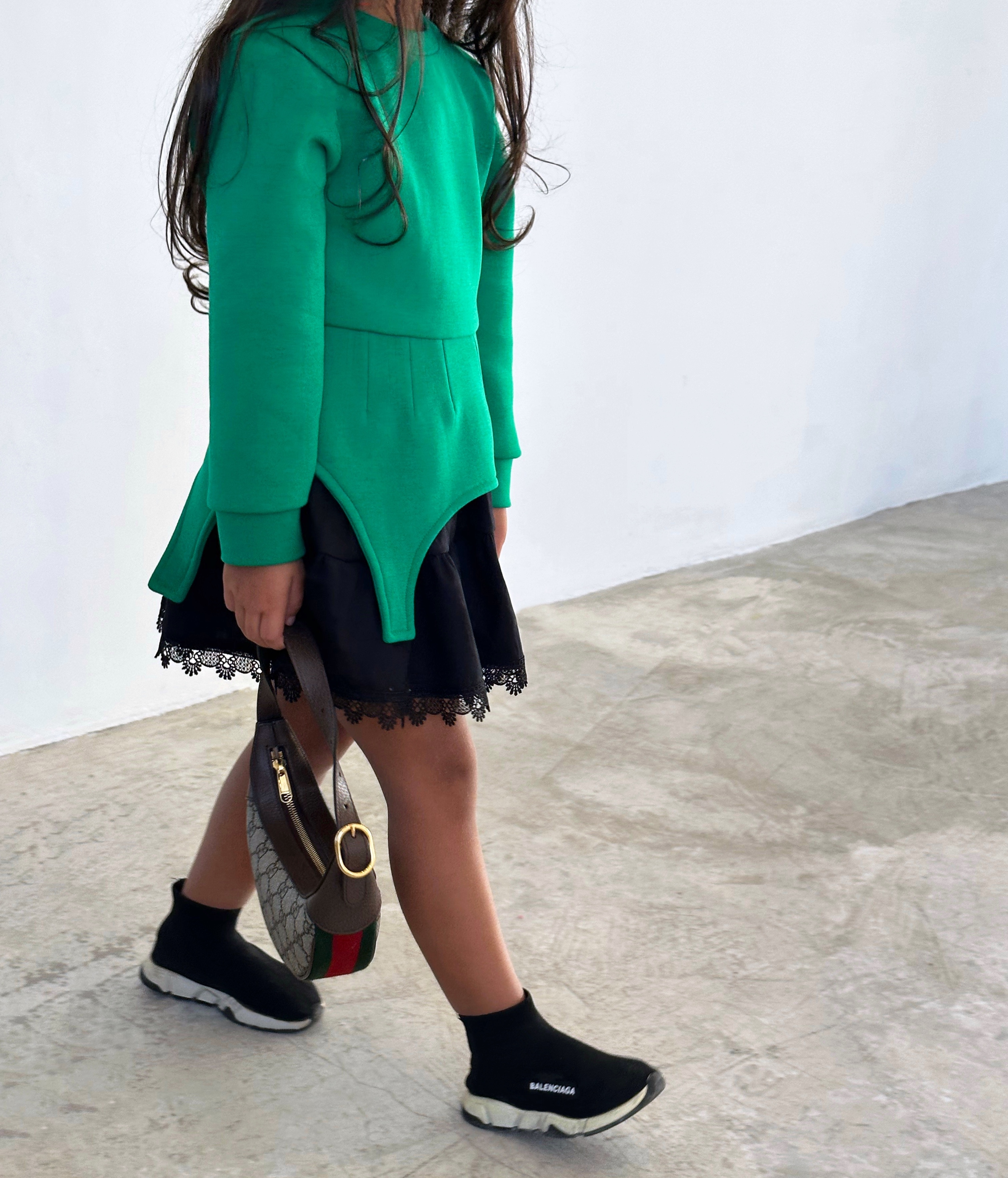Детский свитшот баска из ткани скуба дополнит идеальный образ юной модницы.