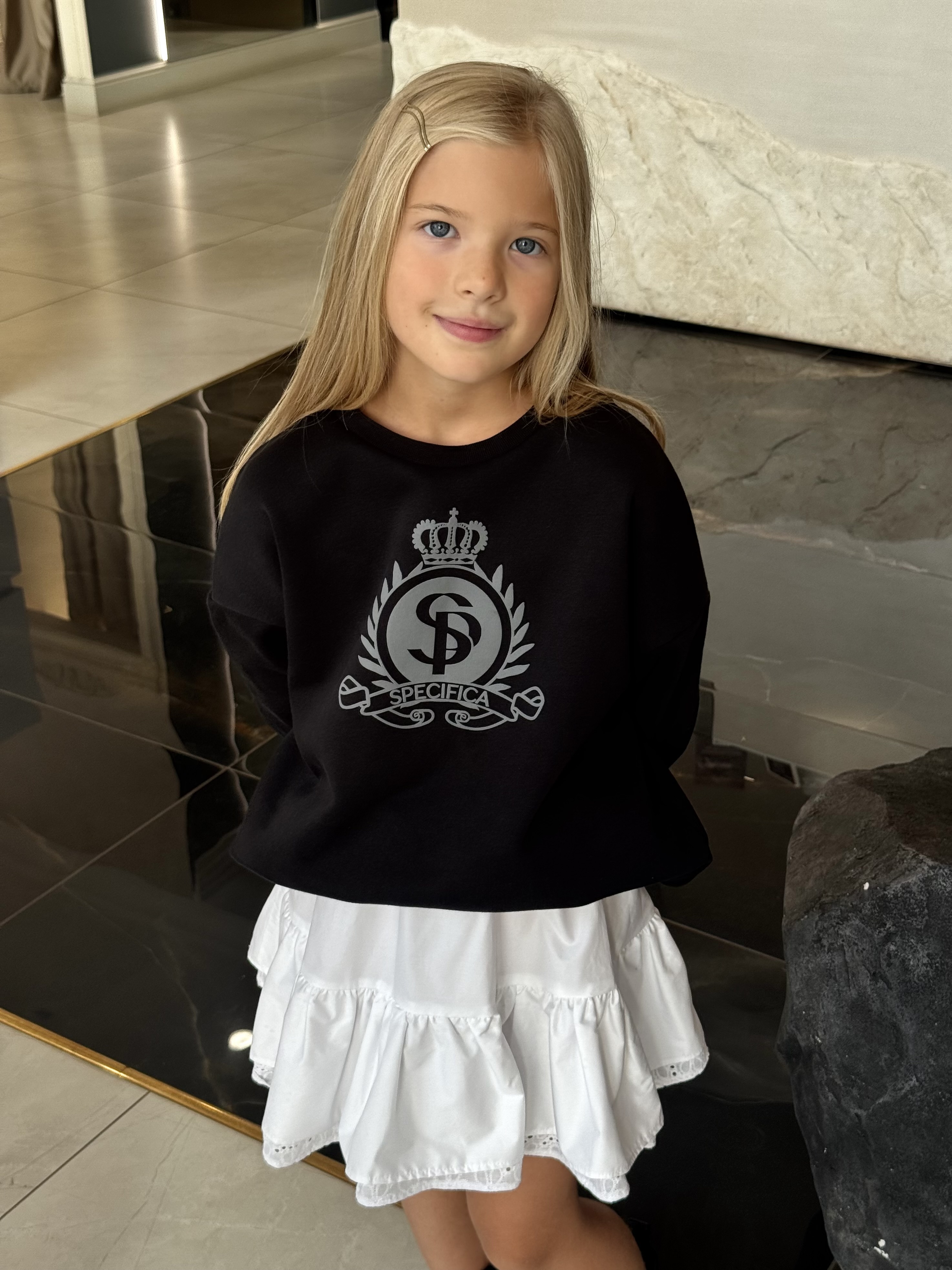 Эффектный свитшот, представленный с печатью спереди в виде герба SPECIFICA.