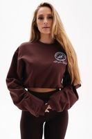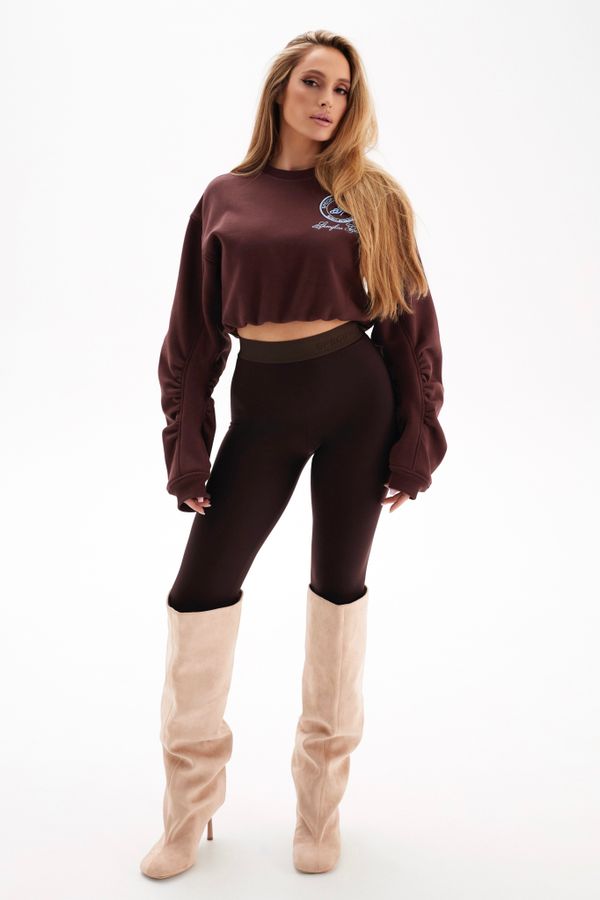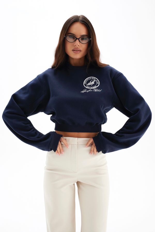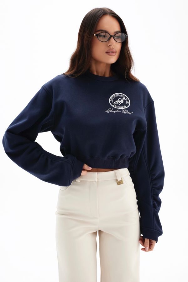 Укороченный свитшот со спущенной линией плеча и акцентной сборкой на рукавах