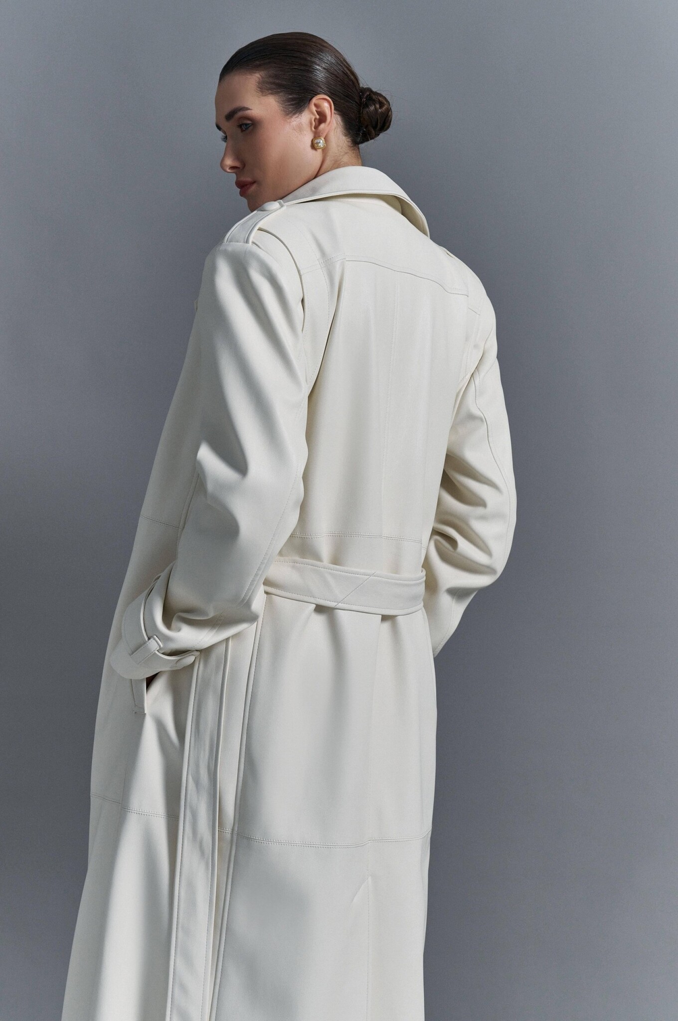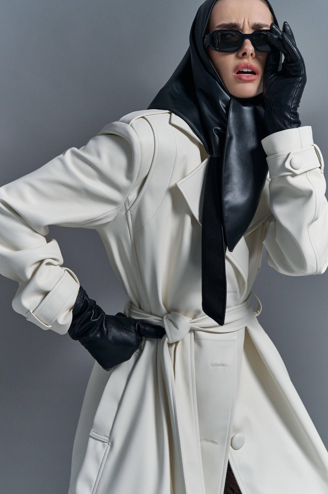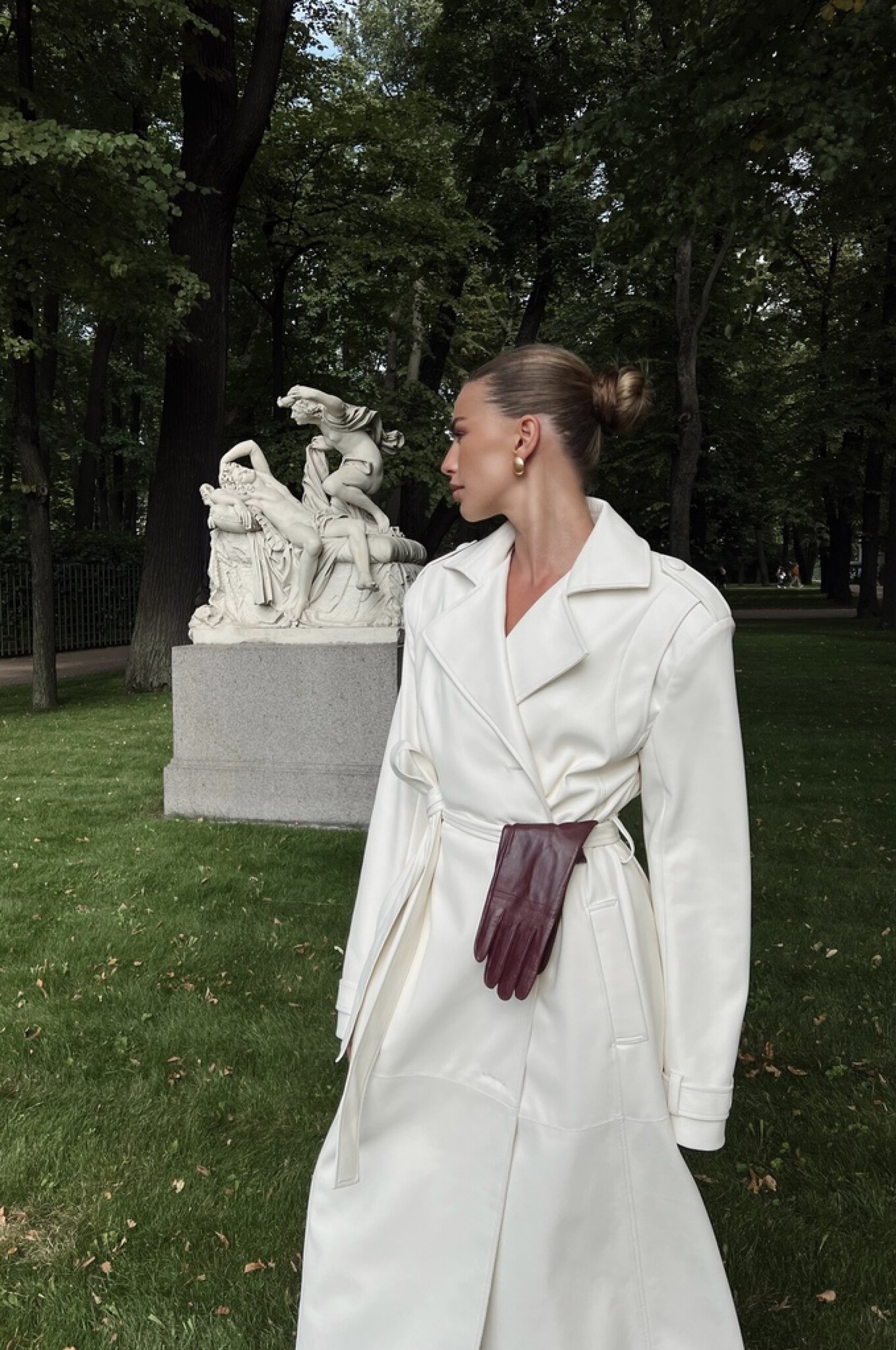 В нашем тренче “СВЕТСКАЯ ЛЕДИ” вы привлечете к себе восхищенные взгляды, а молочный цвет не страшно запачкать, с помощью салфетки легким движением руки можно убрать все загрязнения.