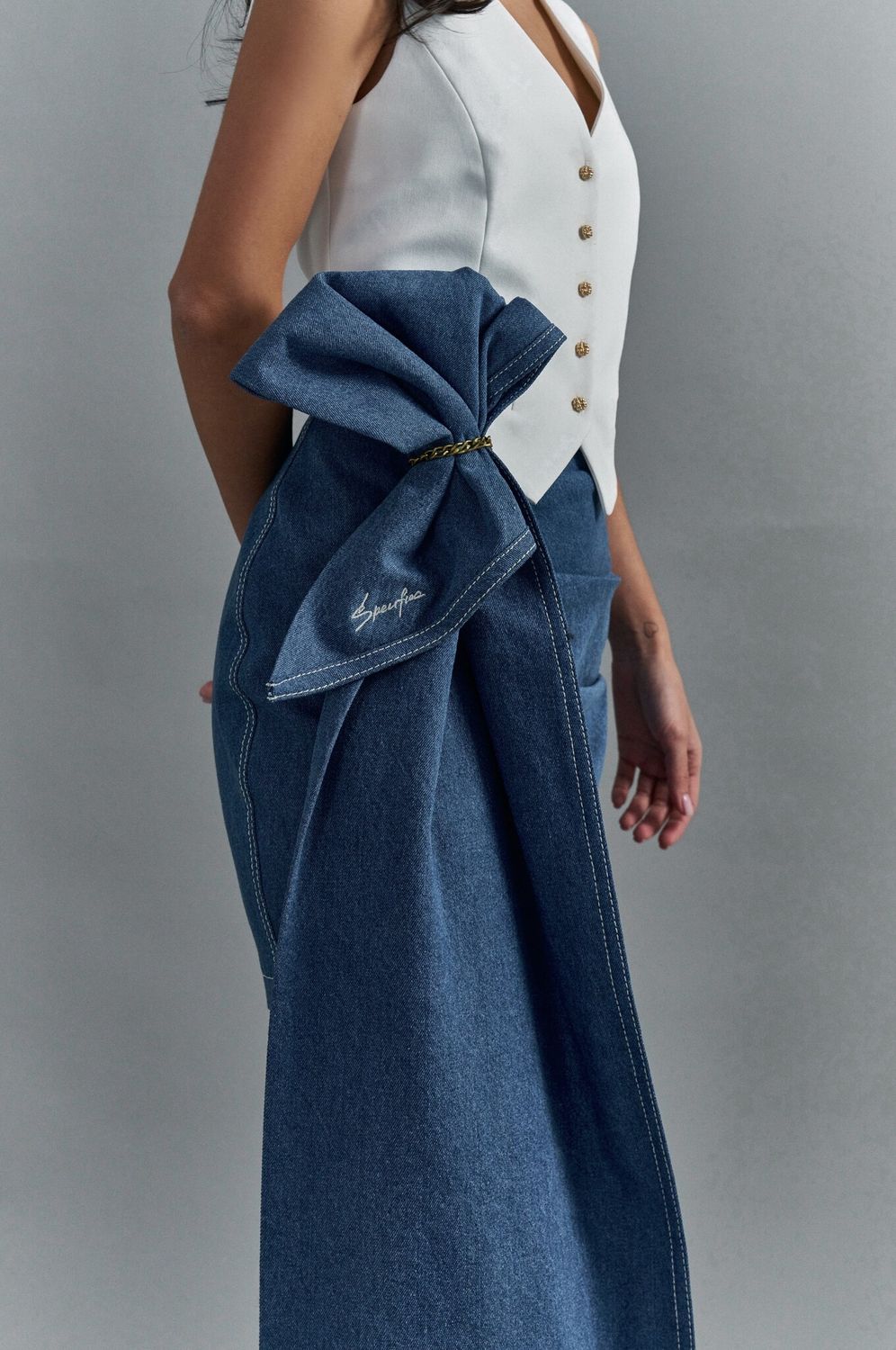 Съемный шлейф можно пристегнуть спереди на потайную кнопку, который позволит Вам с легкостью добавить акцентную деталь для особого случая, либо носить юбку в повседневной вариации.