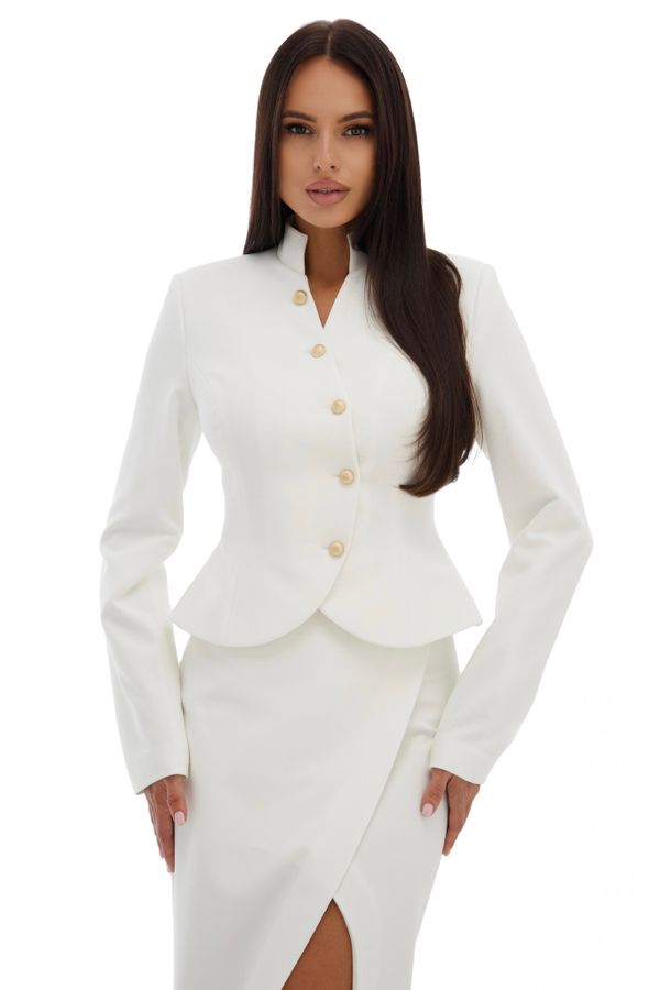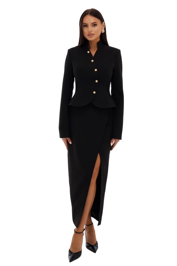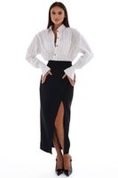 Юбка выполнена из костюмной ткани с акцентным вырезом, который добавляет образу сексуальности.