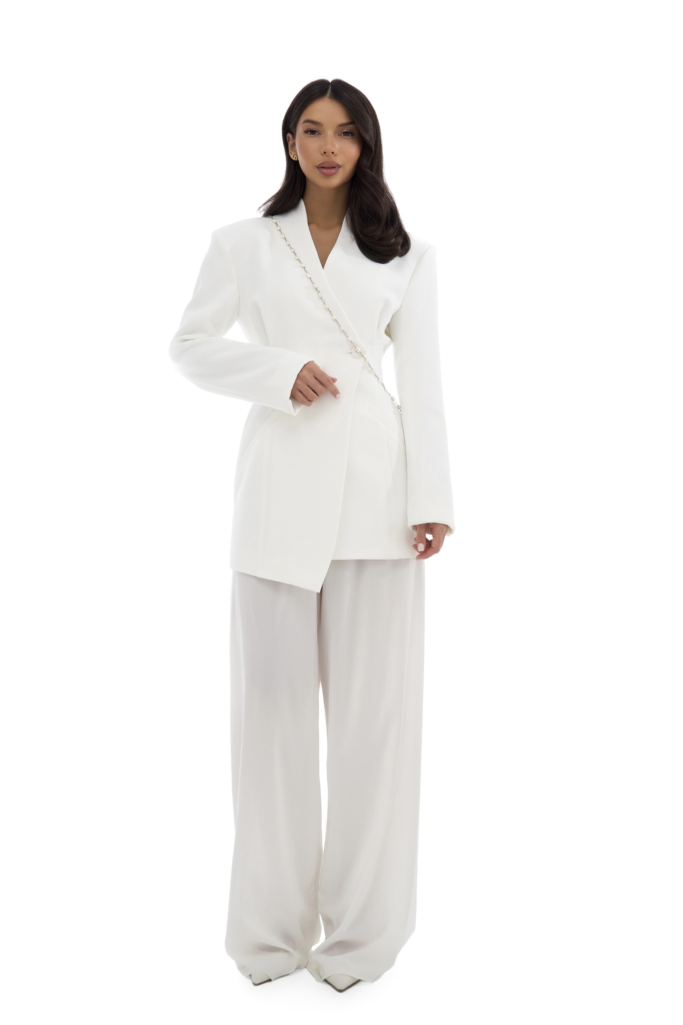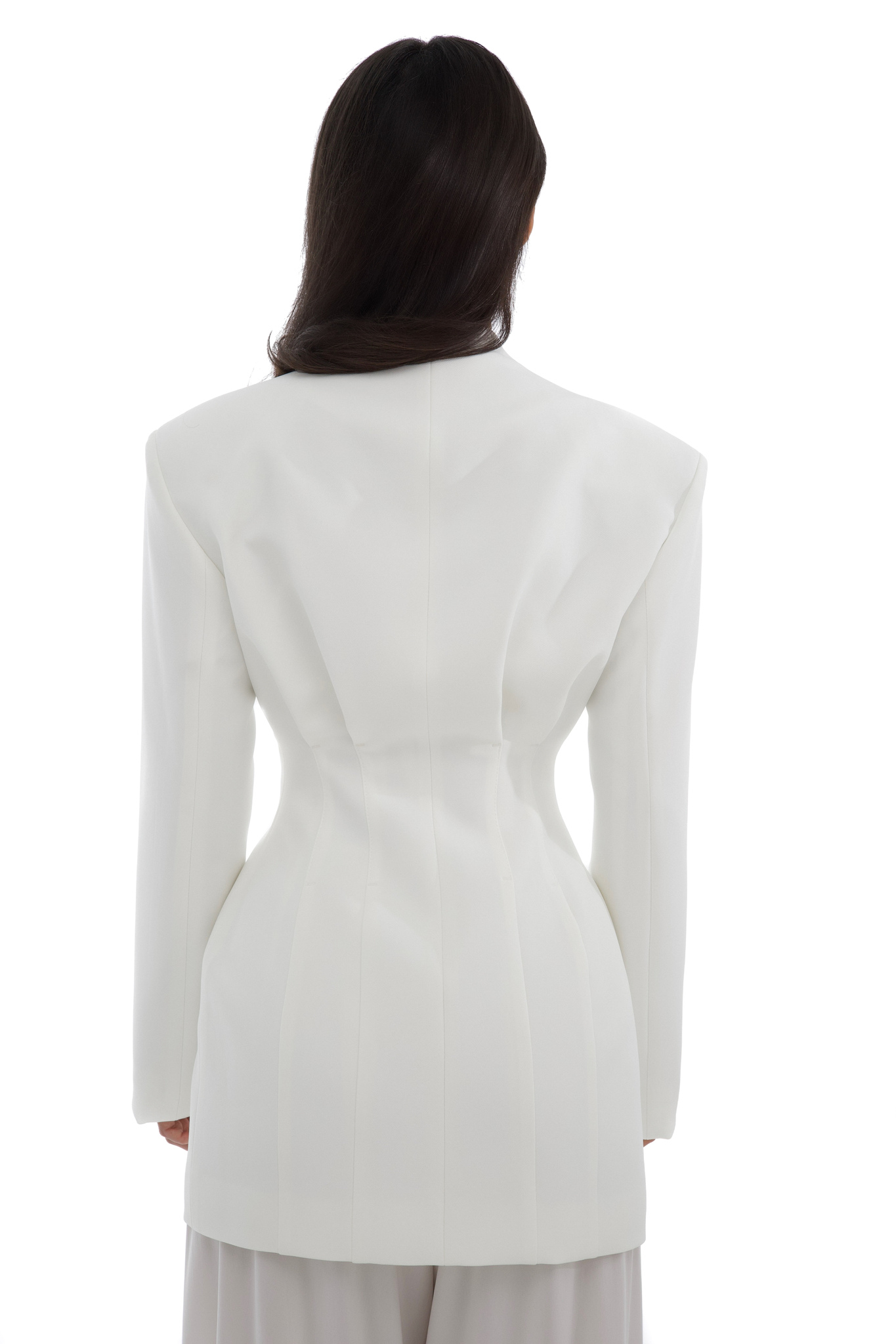 Параметры модели в белом жакете: ОГ 84/ ОТ 62/ ОБ 90