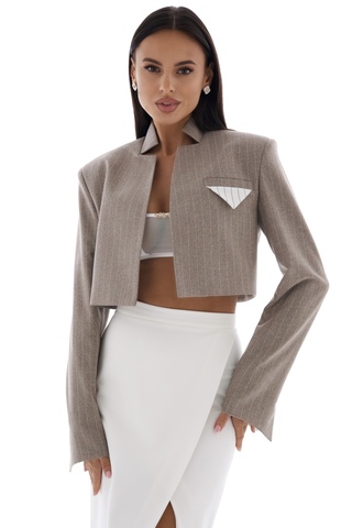 Жакет идеально сочетается в платьем "CHOCOLATE", джинсами "VINTAGE", "RICH", брюками, топами и лонгсливами.