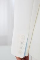 Жакет приталенного силуэта, изготовленный из качественной костюмной ткани молочного цвета на подкладе.