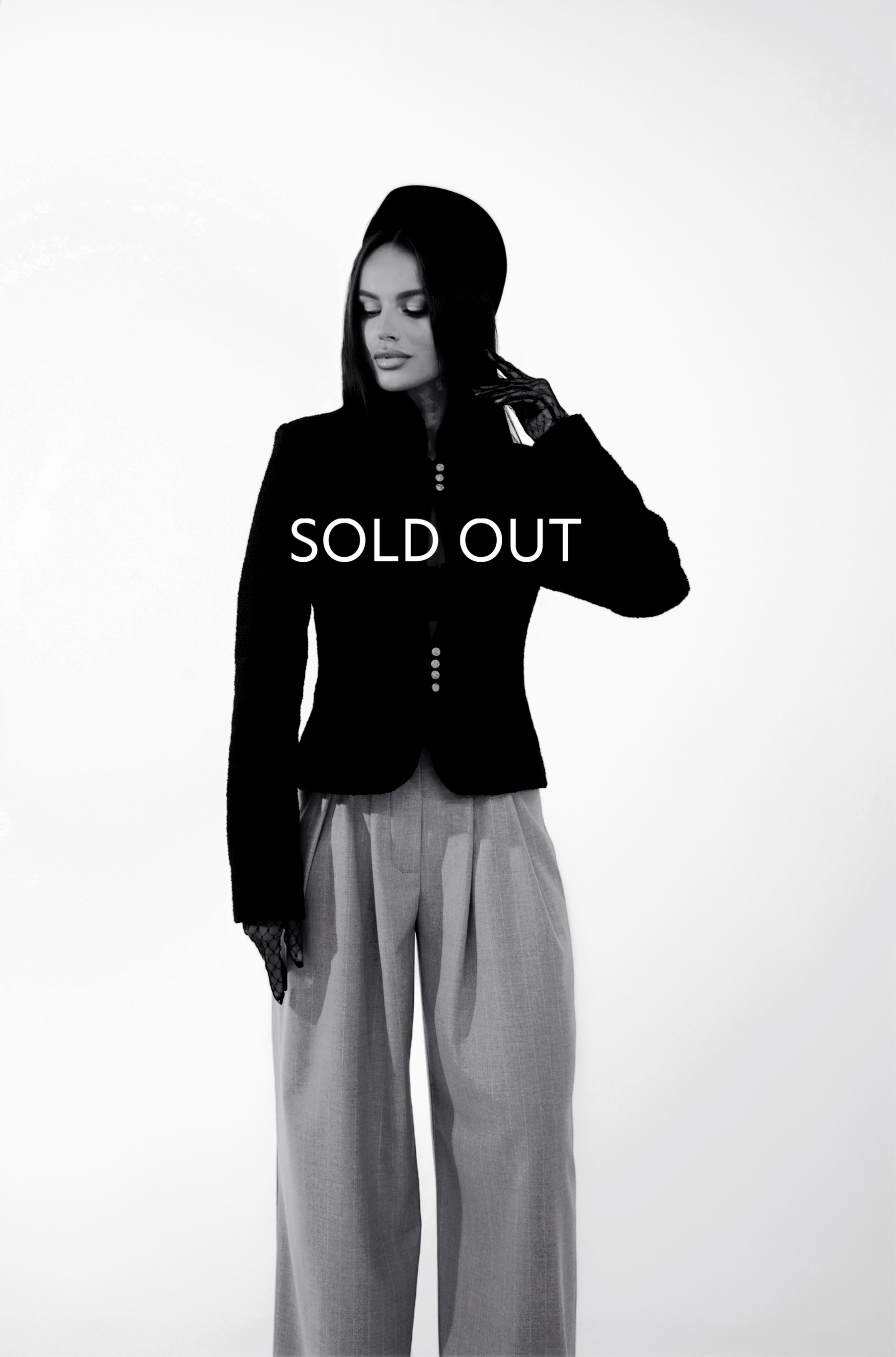 Жакет из премиальной твидовой ткани с воротником стойкой.