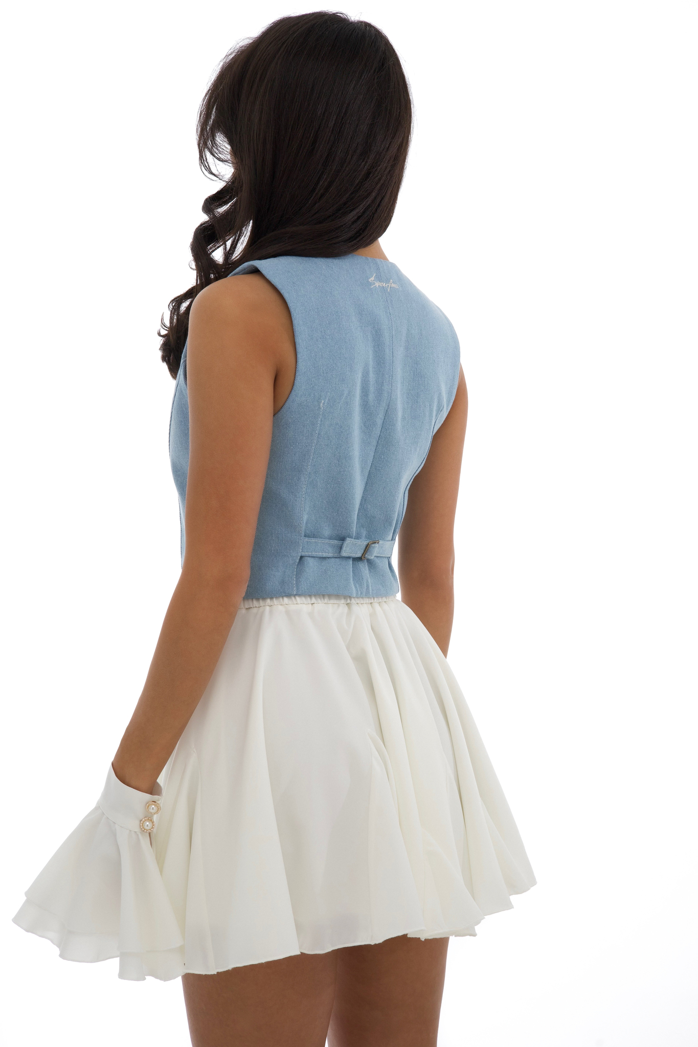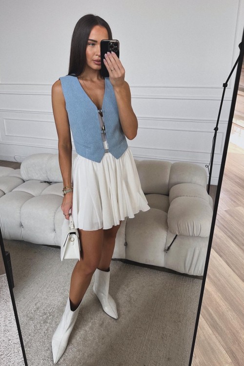 Жилет создан из денима правильных оттенков, которые смогут дополнить гардероб и подчеркнуть Вашу внешность.